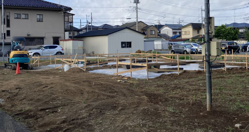 さいたま市西区プロジェクト② 2024年5月30日 最終更新日時 : 2024年6月3日 valleyisland 本格的に西区プロジェクトが始まりました 現在防湿シート敷と捨てコンクリート作業中となっております。